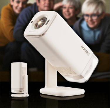 Close-up of trendy tech accessories arranged neatly on a wooden table.